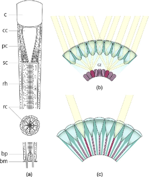 Longitudinal Section Model of Insect Eye 200 Times Enlarged Showing Histological Microstructure and Mounted on a Stand